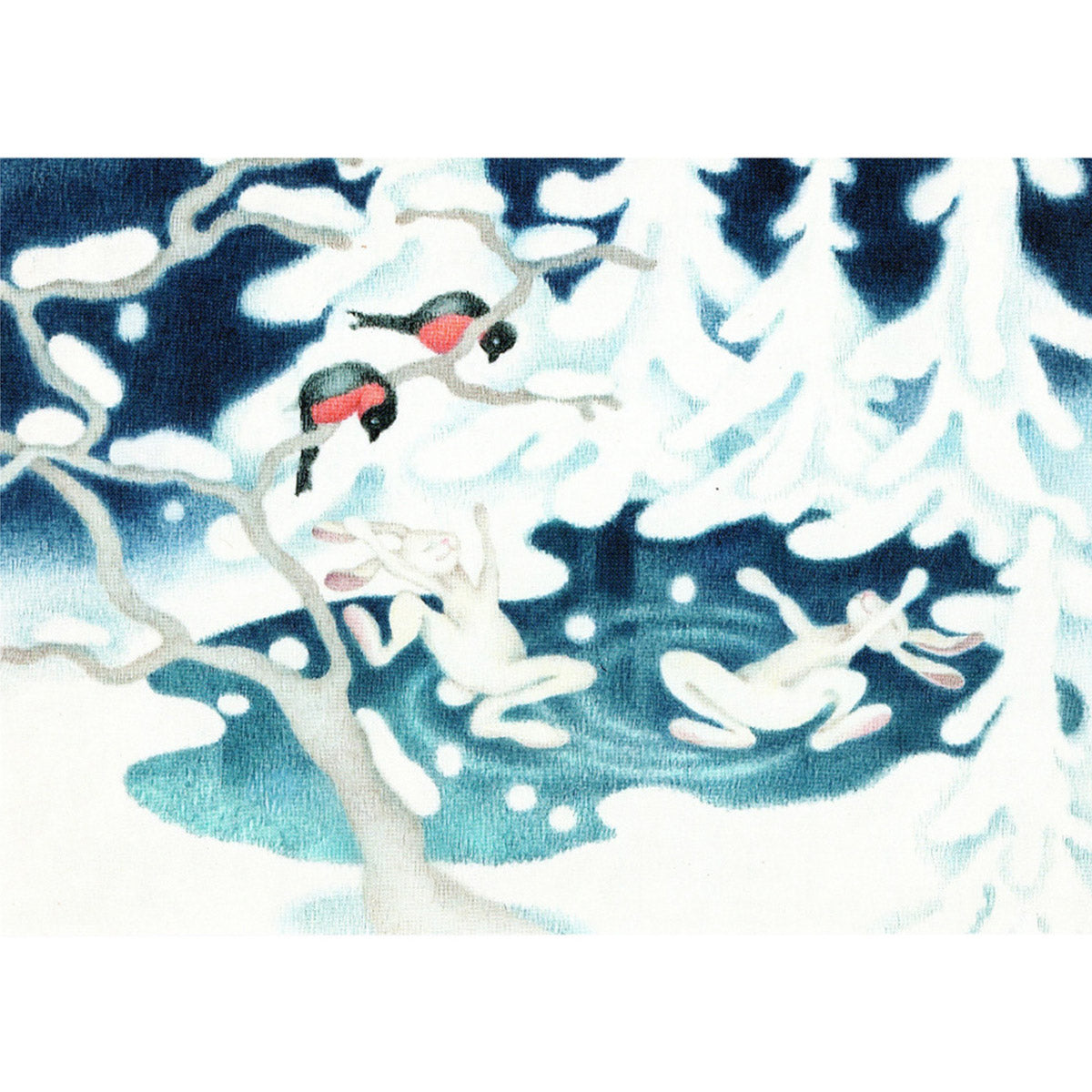 Hares Skating and Birds, Postcard - 4-1/8" x 5-7/8"