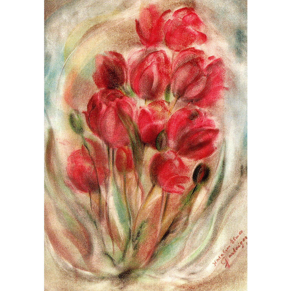 Red Tulips, postcard - 4-1/8" x 5-7/8"