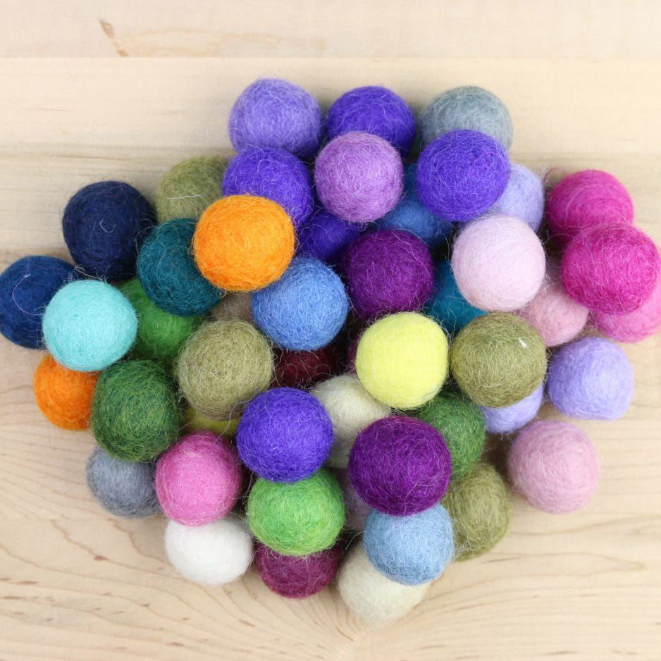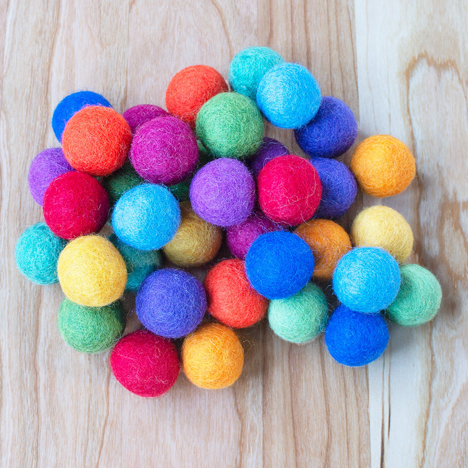 Handmade Wool Felt Balls, 2.5 cm Diameter, Jewel Tone Rainbow Colors, Set of 48
