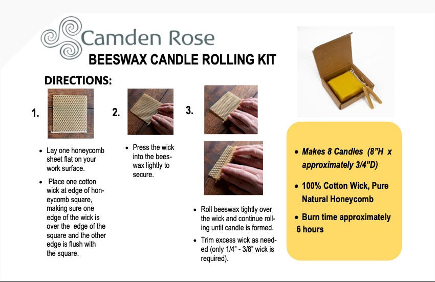 Large Beeswax Candle Rolling Kit with Candle Holder - Create Eight 8" x 7/8" Candles