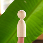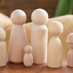 Simple and fun, wooden peg dolls stimulate creative play. Leave the wood natural, rub on some beeswax polish, or get creative with fabric scraps and markers. These peg people may need some light sanding for rough edges. Made in the USA. Peg people are small parts and may be unsuitable for children under 3 years old.