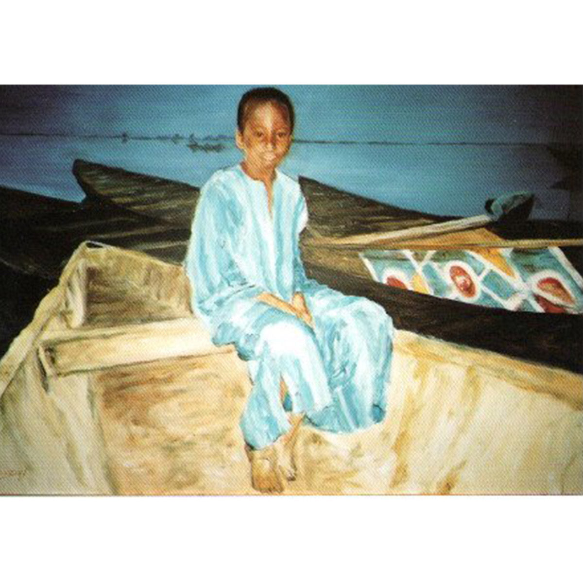 Boy in Piroque on Boat Postcard - 4-1/8" x 5-13/16"