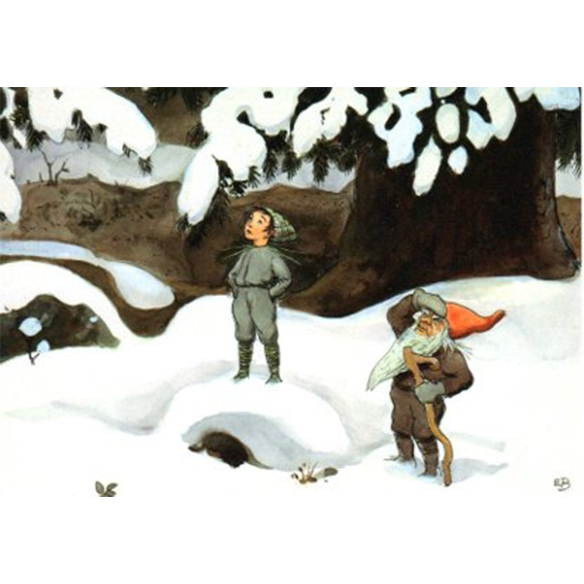 Elsa Beskow Postcard, Crooked-Root and Larch Winter Scene - 4-1/8" x 5-13/16"