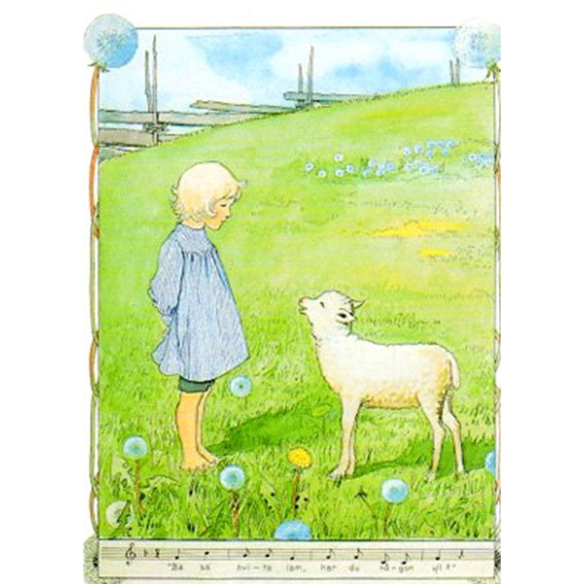 Elsa Beskow Postcard, Child and Lamb - 4-1/8" x 5-13/16" - Ba Ba