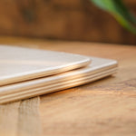These boards are great for painting, as a floor mat for puzzles, lap boards for drawing/writing, etc. We have rounded over the edges and sculpted the sides. These extra woodworking steps makes Camden Rose products artfully beautiful.