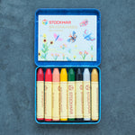 Stockmar Stick Crayons help toddlers and preschool children develop the right finger grip for writing. Vivid colors and pleasant fragrance of Stockmar Stick Crayons appeal to a child's senses. Eight beautiful, blendable opaque colors are packaged in a tin case.