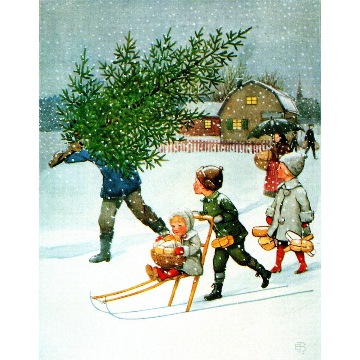 Elsa Beskow Postcard, Taking Home a Christmas Tree - 4-1/8" x 5-13/16"