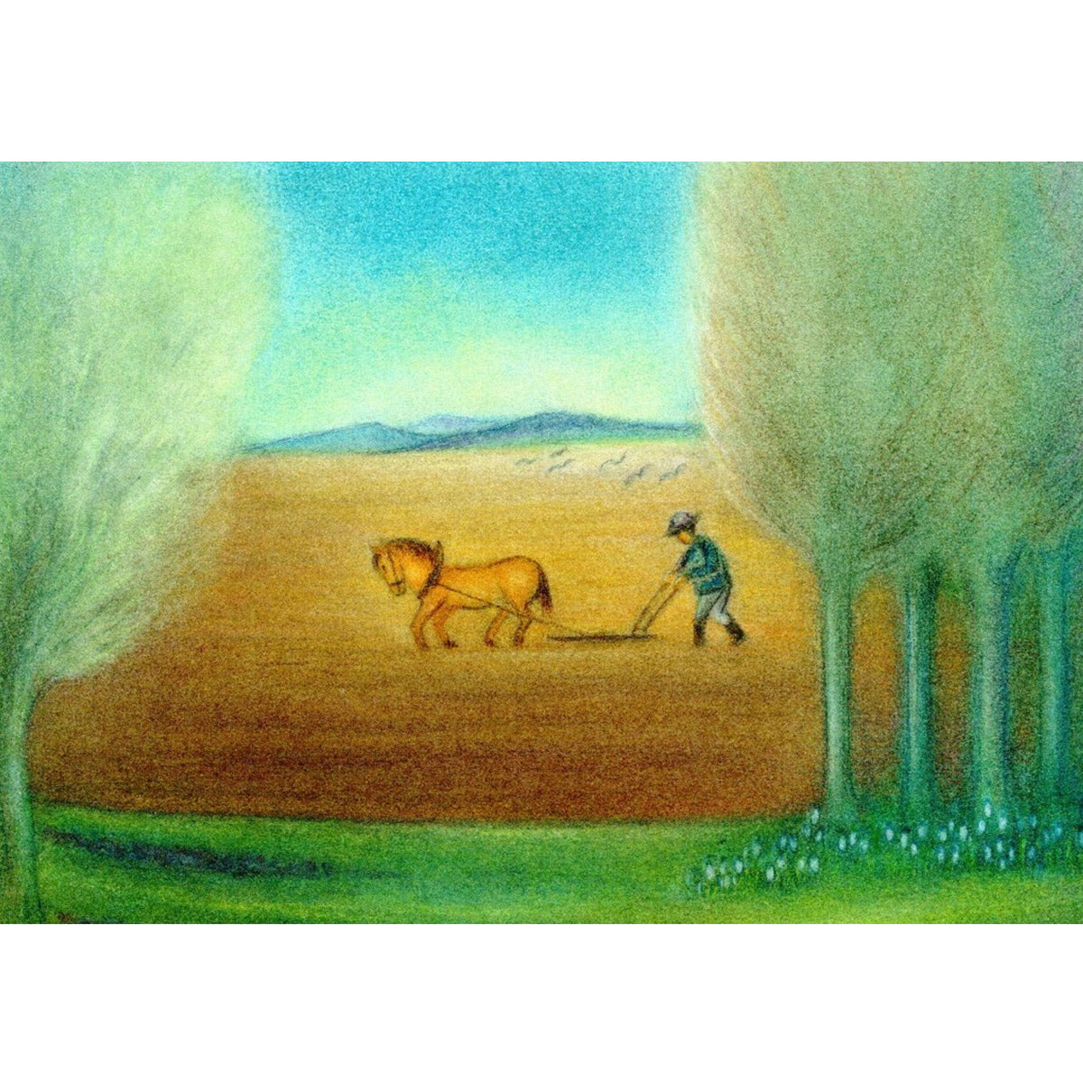 Farmer Plowing Postcard by Ruth Elsasser - 4 1/8" x 5 13/16"