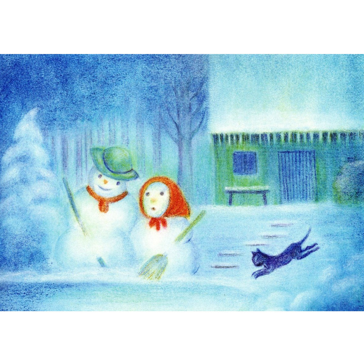 Snowman Couple (February) Postcard by Ruth Elsasser - 4 1/8" x 5 13/16"
