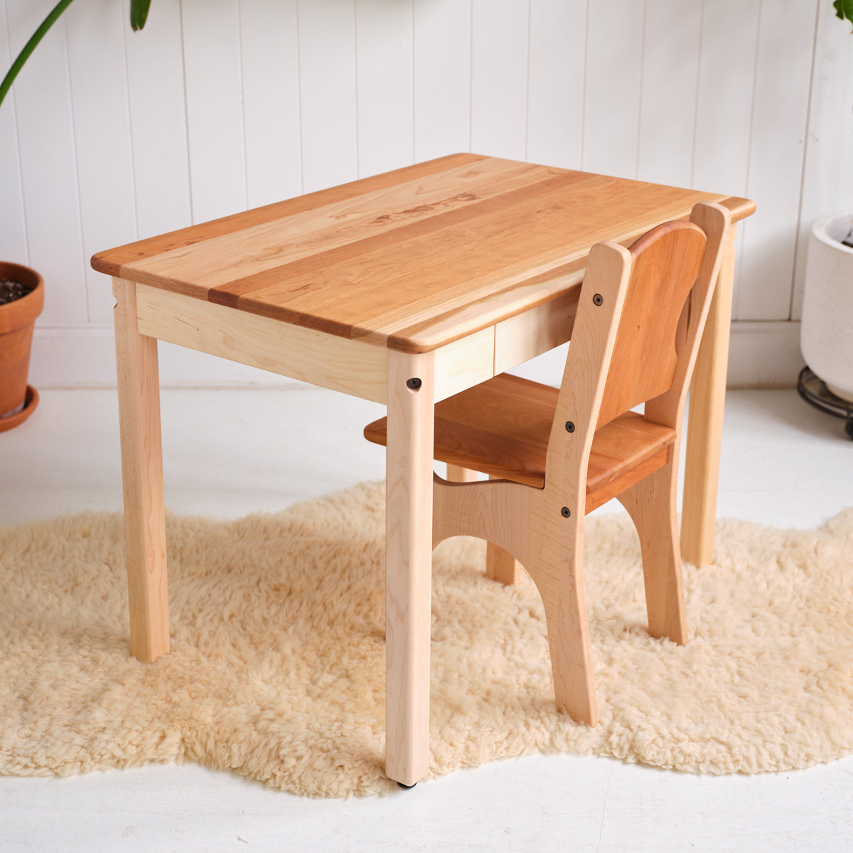 Everyday Child's Simple Chair - Cherry Wood with Maple Accents - Beeswax Finish - 14" L x 13-3/4" W x 28" H