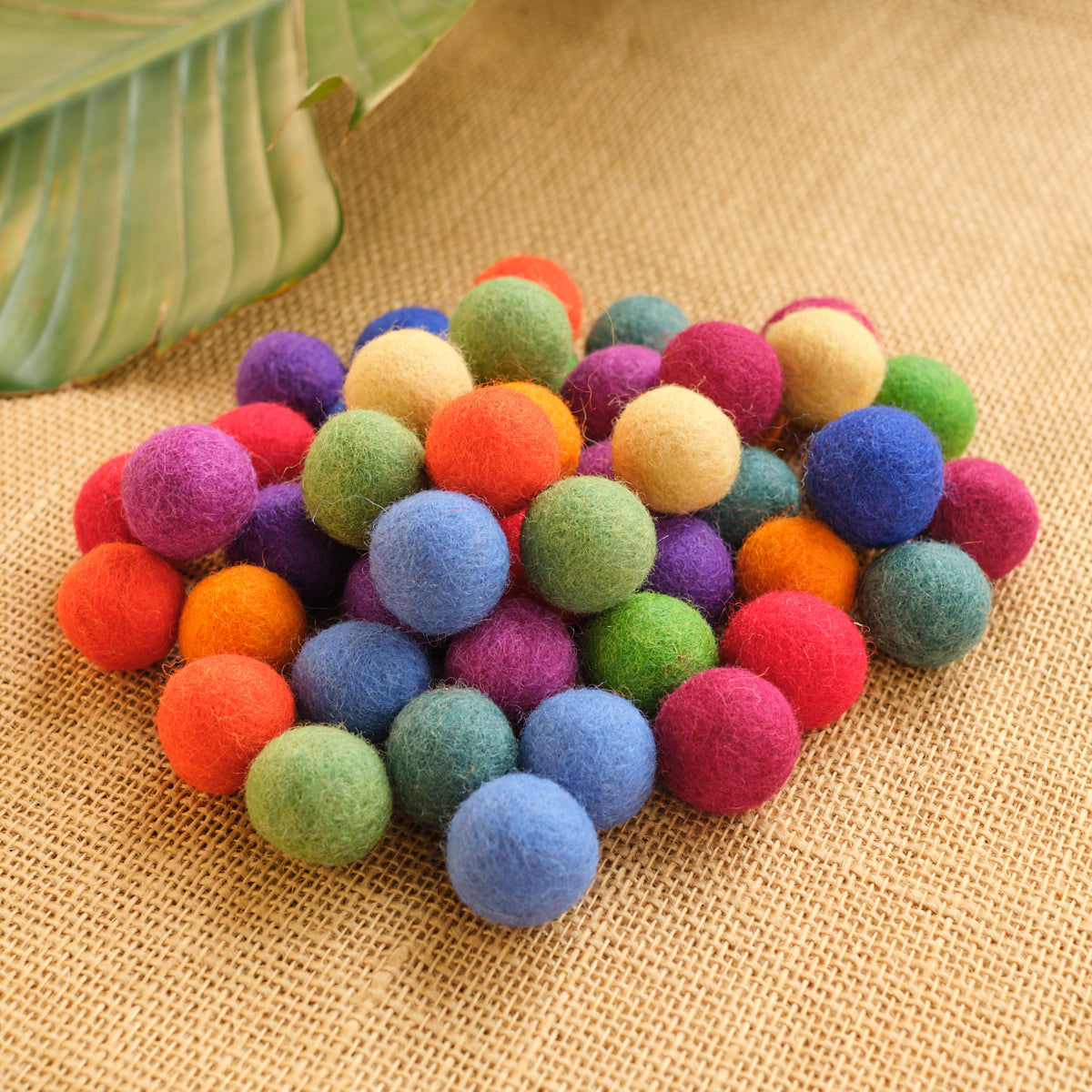 Handmade Wool Felt Balls, 2.5 cm Diameter, Jewel Tone Rainbow Colors, Set of 48