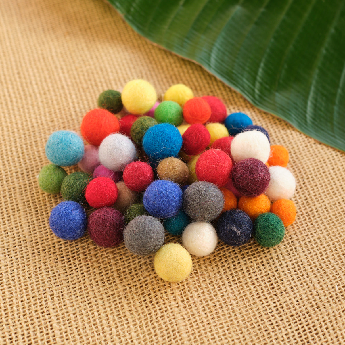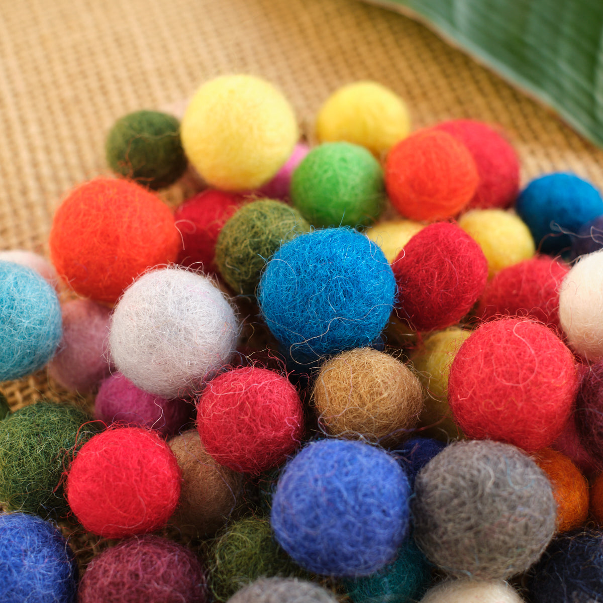 These are fabulous felted wool balls! A favorite childhood toy that's a delight to play with. Great for crafts (necklaces, garland), dollhouses, and decorating your nature table. Each ball is expertly hand felted in warm colors with intricate designs. Each bag contains 30 balls of two different sizes (1 cm and 1.5 cm) and they come in a variety of colors.