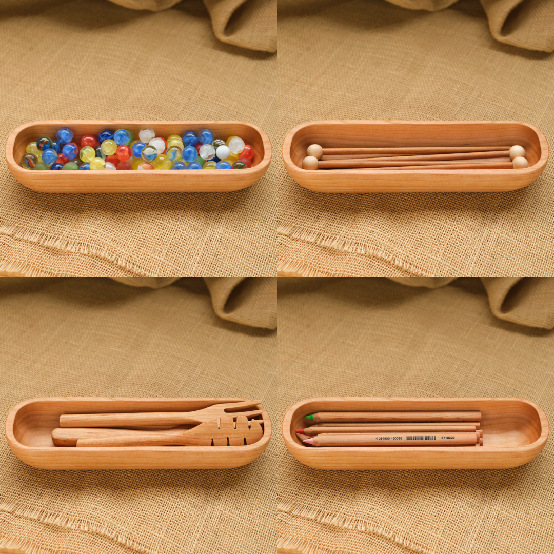 Perfect in the kitchen, dining room, or as a desk companion, this 10" Cherry Wood Cracker Bowl/Trinket Tray is fantastic for all sorts of serving and organizing purposes. Use as a small party tray, serving companion, or as a pencil and/or utensil holder; the utilization options are extensive! Made in the USA.