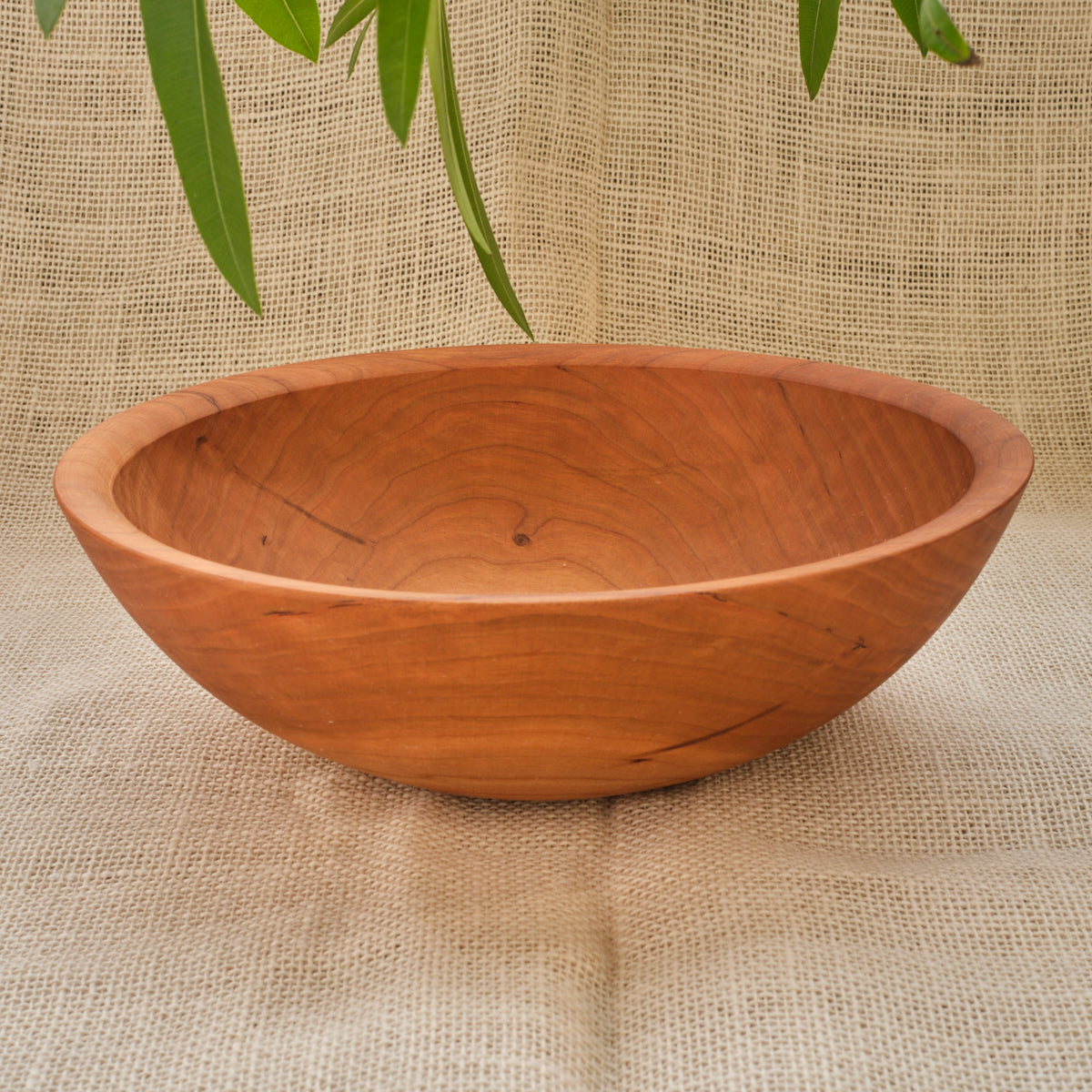 Cherry wood bowls are beautiful and functional. Each bowl is hand-crafted in Michigan from a solid block of cherry hardwood. Cherry wood is a beautiful, living wood that darkens with light exposure, which will transform into a deep brown red over time.