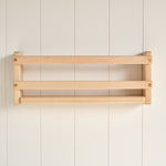 Simple design with loads of functionality. Display books, artwork, etc. Sized with keyholes on the back side panels at 16" for easy stud hanging (drywall may require anchors). Maple wood with our All Natural Beeswax Polish.