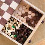 16" x 16" Walnut & Maple Checker Board Set with Drawer, Checker & Chess Pieces Included