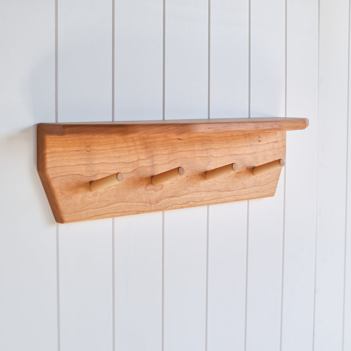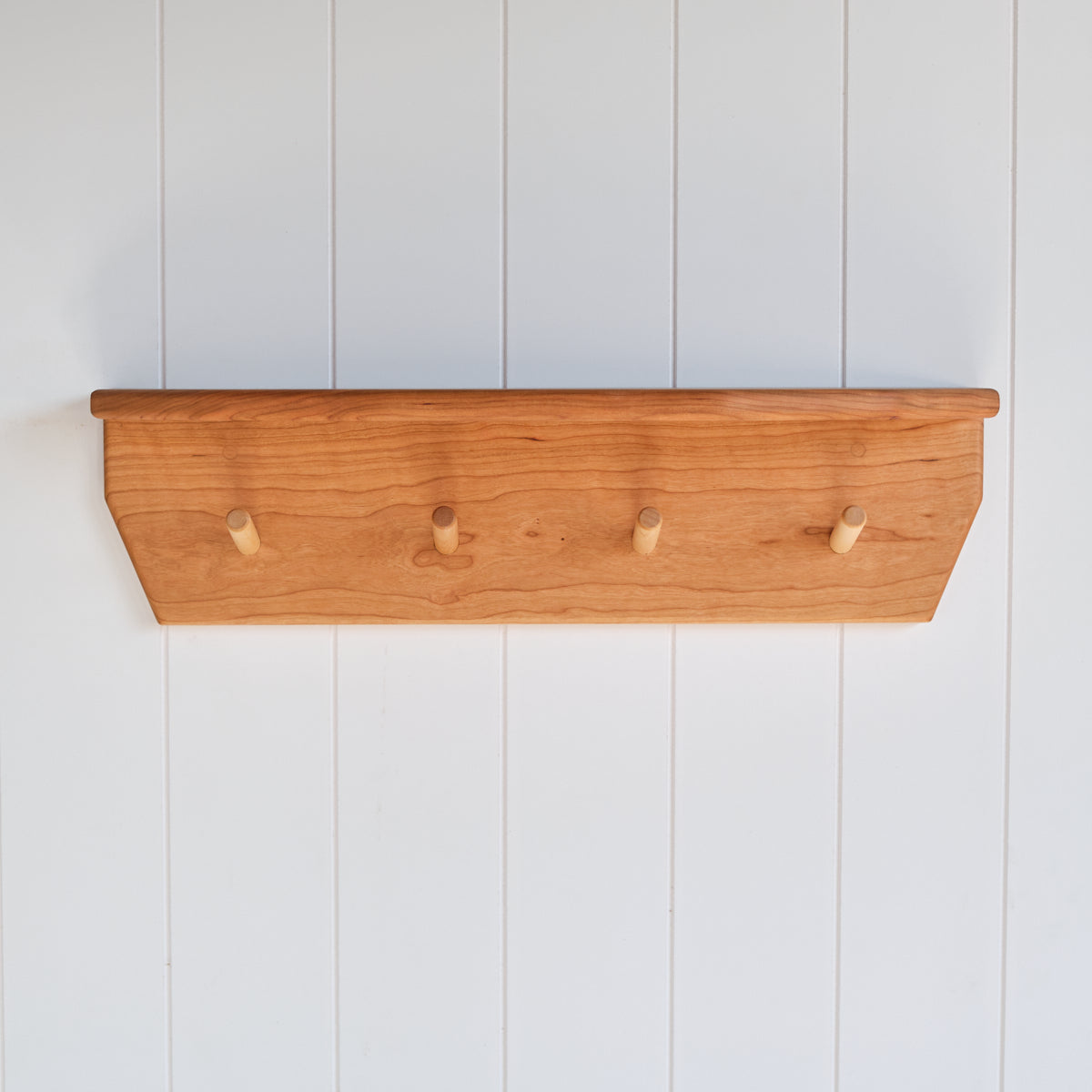 22 1/2" Cherry Wall Shelf with Peg Coat Rack