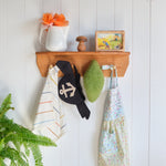 So many uses - add to any play room, entryway, mud room, bedroom etc. The top shelf can store books, artwork, etc. and the wooden pegs provide extra functionality. Finished with our All-Natural Beeswax Polish (organic Jojoba oil and beeswax). Made from solid Cherry wood.