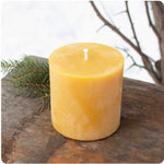 This hand-poured beeswax pillar will fill your home with enriching warmth and a sweet honey aroma. Made of 100% pure beeswax with 100% cotton wick. Has a home-made look to it.