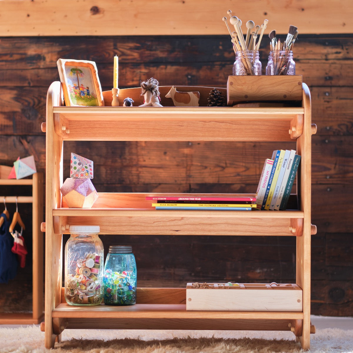 Our Adjustable Cherry Wood Shelving Unit has many ways you can adjust it to fit your needs.