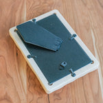Routed recess fits a 4" x 6" picture (the European postcards need to be trimmed a little to fit). Cardboard easel back allows for landscape or portrait setup.