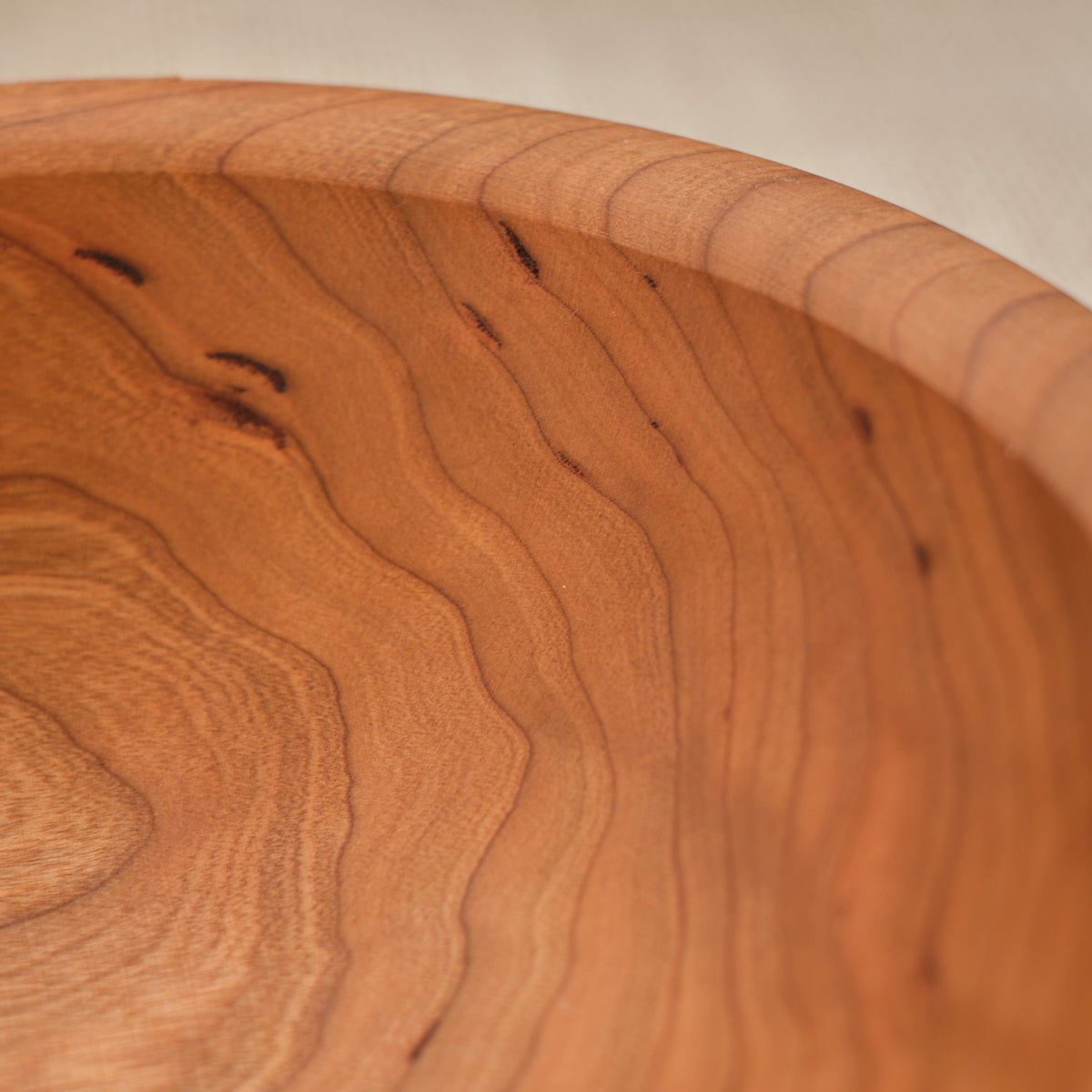 This is our classic exclusive sculpted style that mimics a bowl with a band. Each bowl is made in Michigan from a solid block of wood. Cherry wood is a beautiful, living wood that darkens with light exposure, and transforms into a deep brown red over time. Why cherry wood? It is one of the woods that grows great in Michigan.