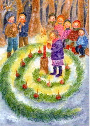 Beautifully illustrated scene of Advent by European artist Ilona Bock. Accent your nature table, inspire the walls of your home or classroom, use as a postcard or just give as a gift.