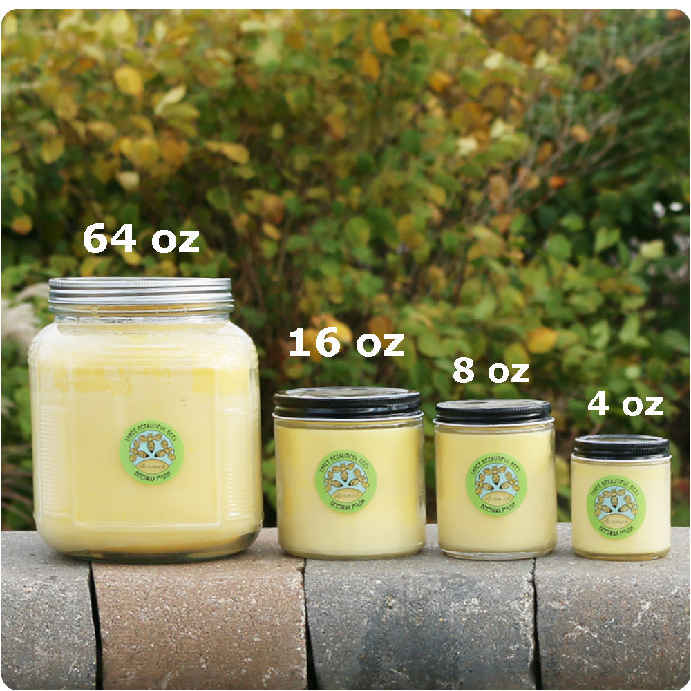 - Size: 4, 8, 16, or 64 oz. in a glass jar