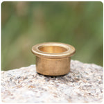 These brass candle cups are made for 1/2" diameter candles and fit in our sculpted birthday ring holes. This is un-coated brass so it will tarnish/oxidize. To clean, just wipe/brush with a mixture of baking soda and lemon juice.