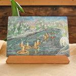 This postcard holder is a unique and beautiful way to display a large card, picture, postcard, or a snapshot of a child's drawing. Approximately 12" long. Its warm cherry wood color and smooth, organic design will complement any décor.