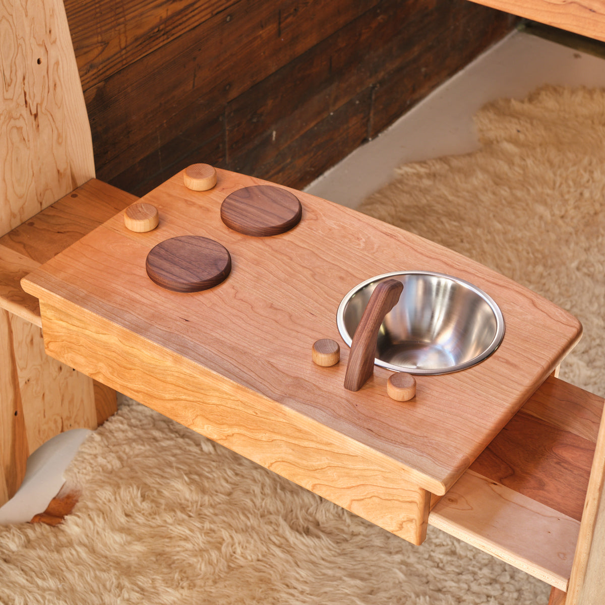 Our Camden Rose Large Eco Playstand provides a magical place for your children. Crafted from cherry hardwood, this Playstand takes only minutes to set up. Cherry wood is a beautiful, living wood that darkens with light exposure, transforming into a rich reddish brown over time. Add a silk canopy, play clips, a table top kitchen, market stand set, or additional play stand shelves to personalize your Eco Playstand. Recommended for children ages 2-12. Comes with metal hardware. Easy to assemble.