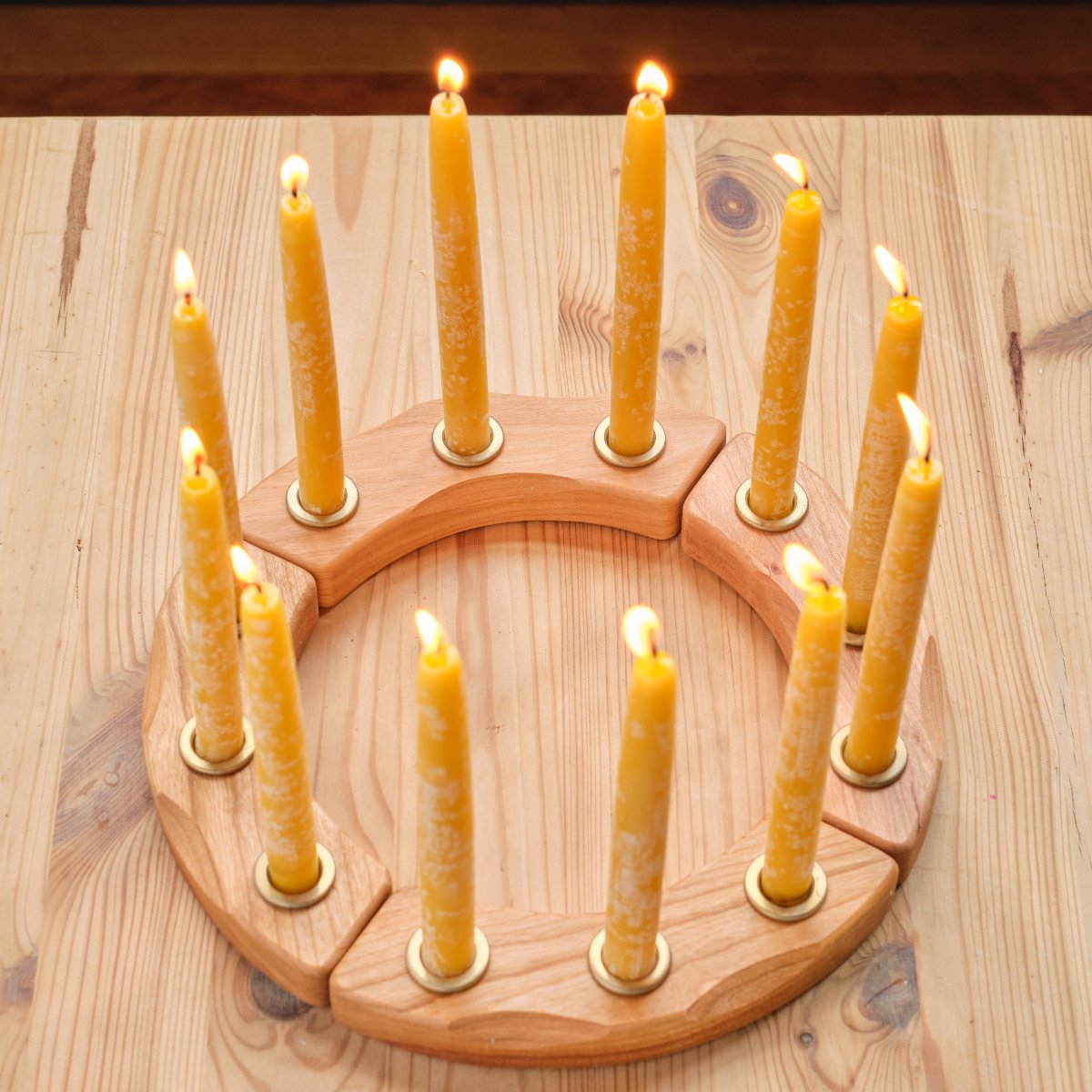 This Celebration Ring is not just for Birthdays. A wonderful tradition to decorate any festive occasion, nature table or celebrate the seasons. This 12 candle holder set includes 12 candles and candle cups that can be removed to place any decorative element - yes, any Grimm's ornaments will fit.