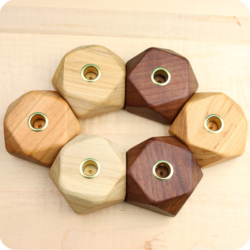 The timeless geometric form of the pentagon graces this lovely Wood Candle Holder. Holds a 1/2" diameter beeswax candle (sold separately).