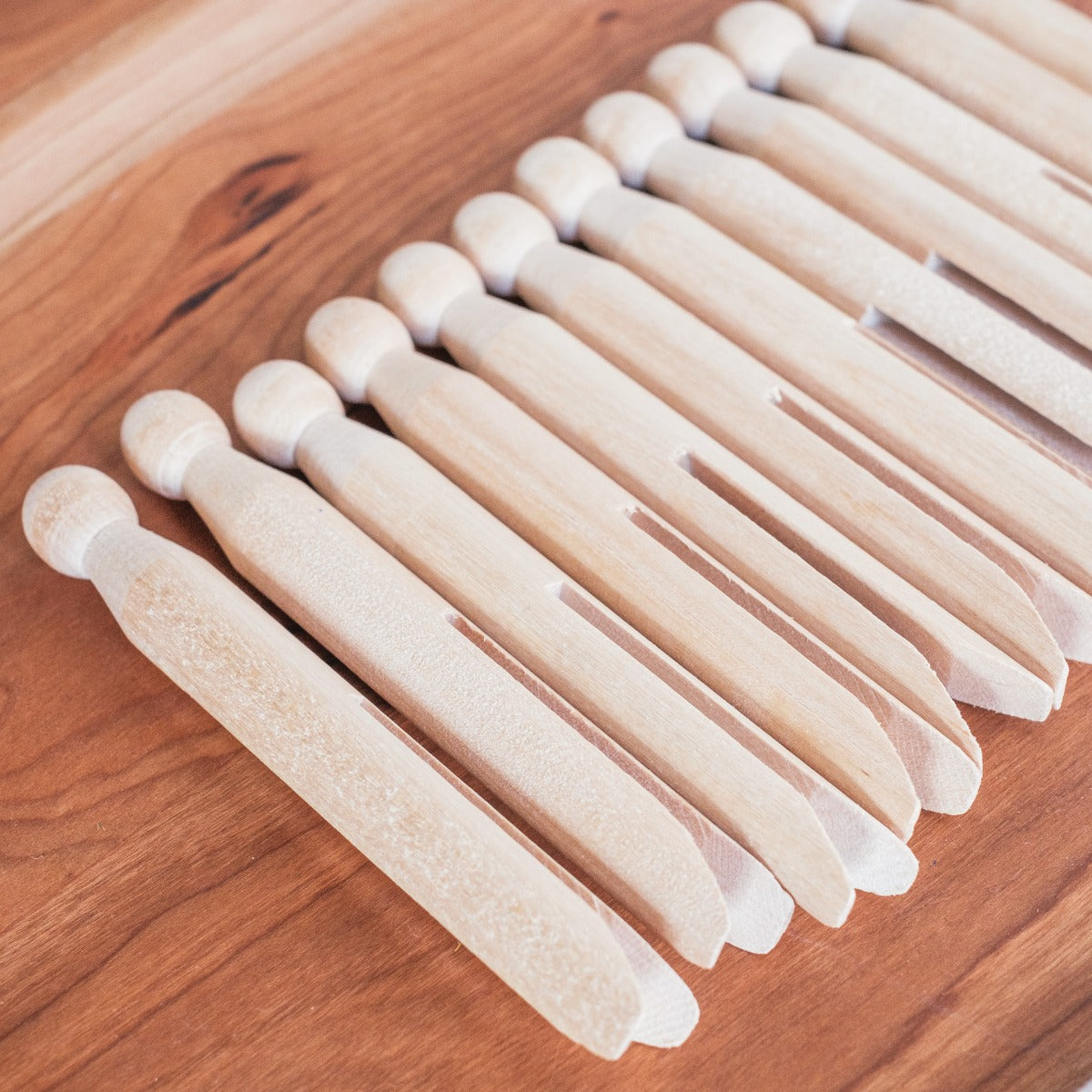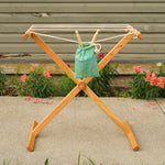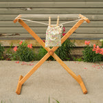 Available options include drying stand only, or drying stand with 12 wooden clothespins and a 100% cotton drawstring bag (multiple patterns available).
