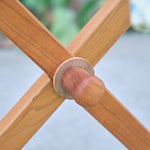 Our drying stand, created with four clotheslines locks in the open or closed position with a wooden bolt. Made in the USA from cherry hardwood. Cherry wood is a beautiful, living wood that darkens with light exposure, transforming into a rich reddish brown over time.