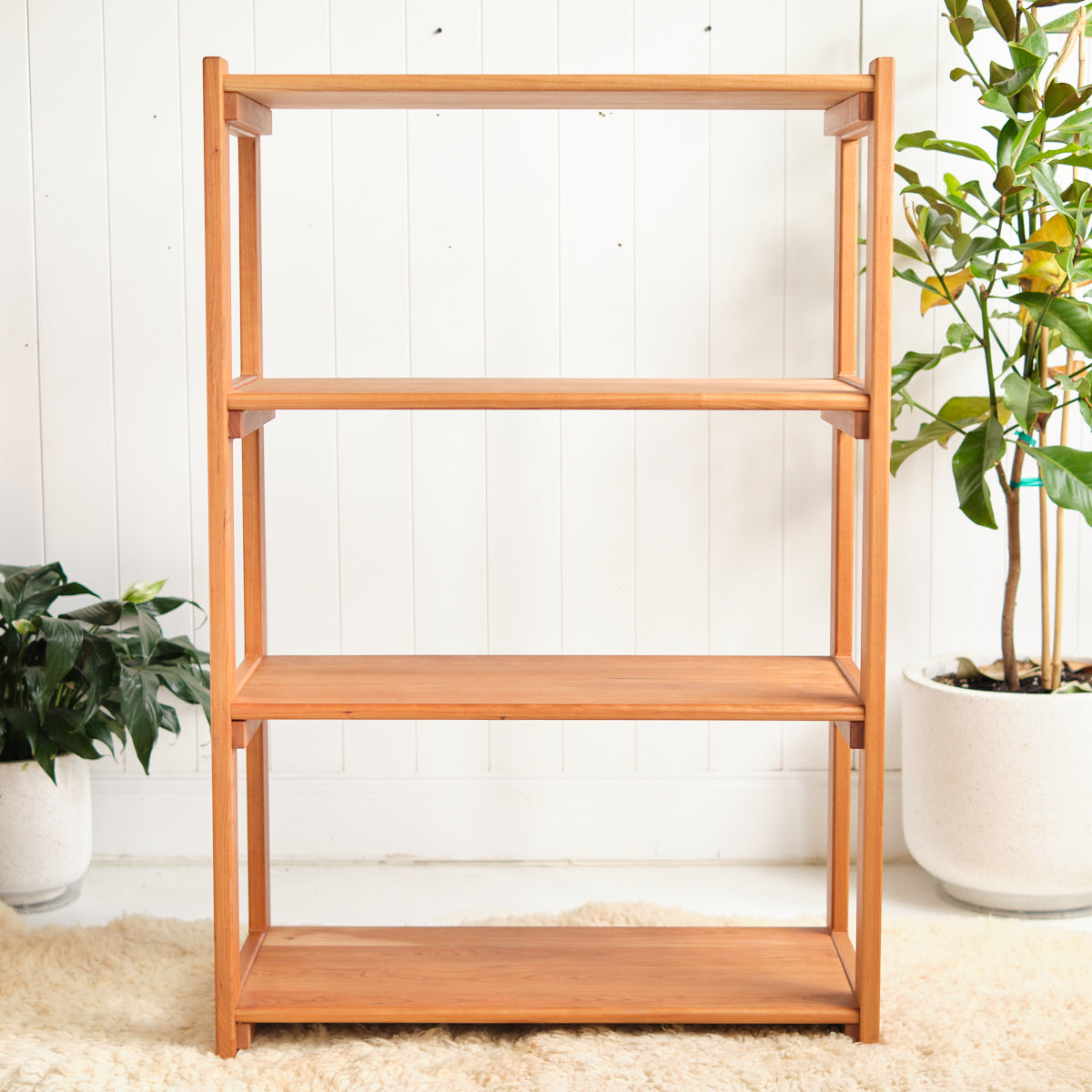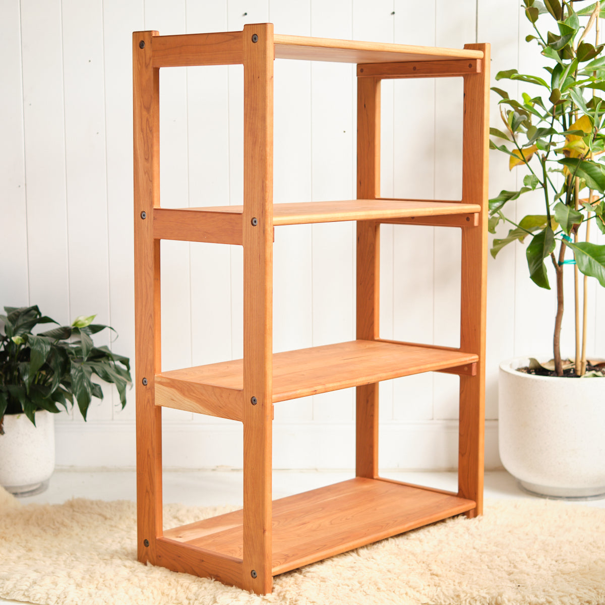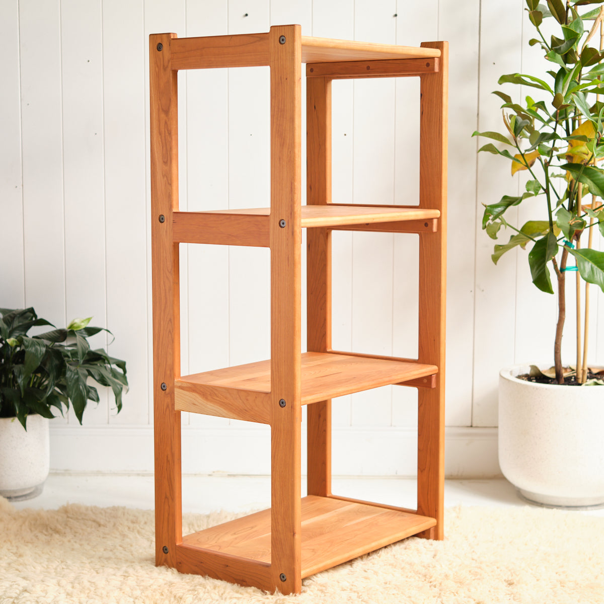 Versatile, beautiful and functional. This 4 shelf system offers three lengths of shelves 20", 28" or 36". They can mix with our other 2 and 3 shelf open cherry sides. Simple Assembly - you don't need any tool but the assembly time will be around 5 minutes with a power hex head screwdriver.
