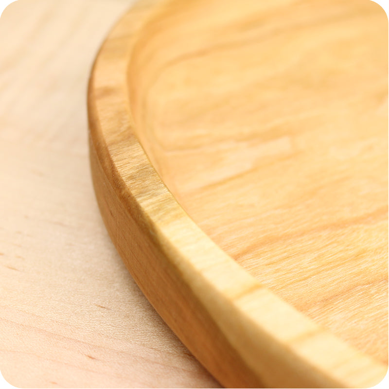 Our 7.5 inch Wooden Plate is crafted from a single piece of premium hardwood the same way that artisans did over 150 years ago. Finished with our non-toxic All Natural beeswax wood polish which is perfectly safe for eating. USA made.