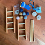 - Materials: Cherry hardwood (sides), Maple hardwood (floors), Birch wood (ladder rungs)