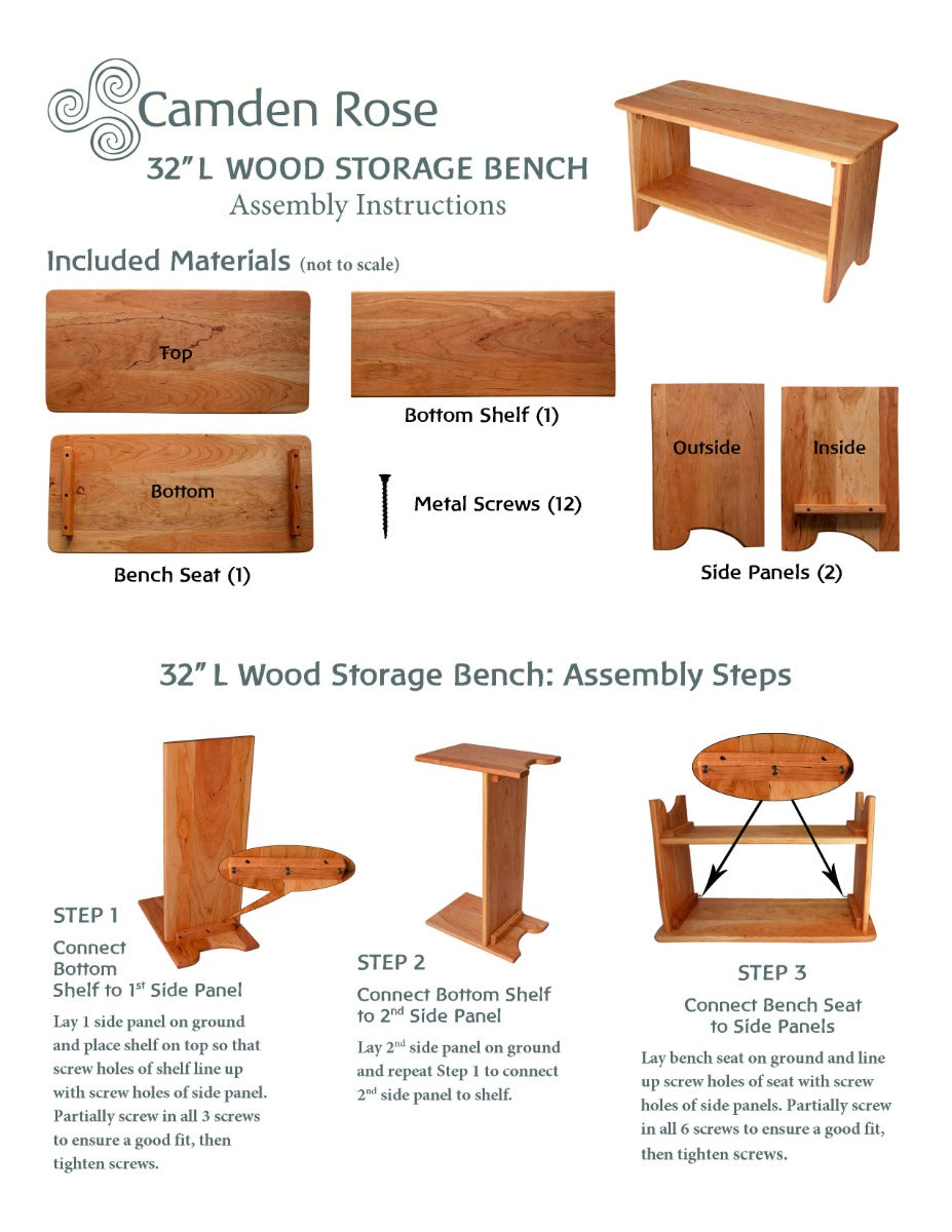 - Shelf Under Bench: 25" L x 12" D x 12 1/8" H