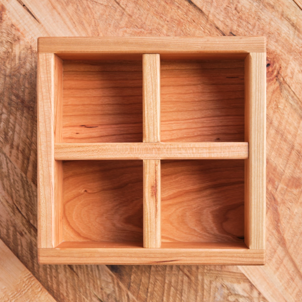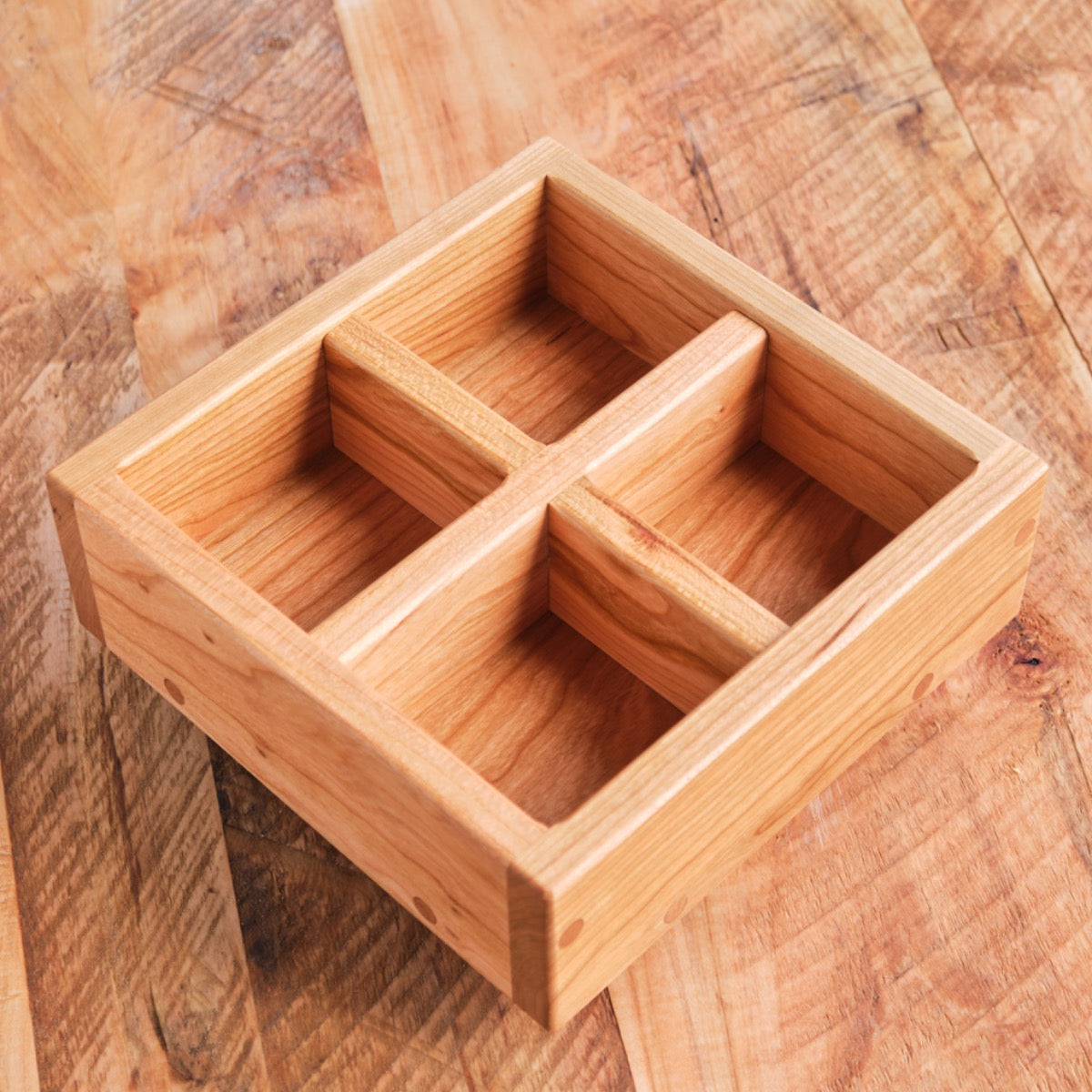 Cherry Wood Table Top Caddy / Lazy Susan with Removable Dividers - 8 3/8" W x 3.5" H