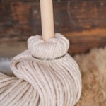 Our sturdy and charming Child's String Mop is created using only natural materials. Cotton string is tied the old fashioned way to a 25 inch hardwood handle using a machine that is well over 100 years old. Handle is finished with our Three BEEautiful Bees All Natural Wood Polish.