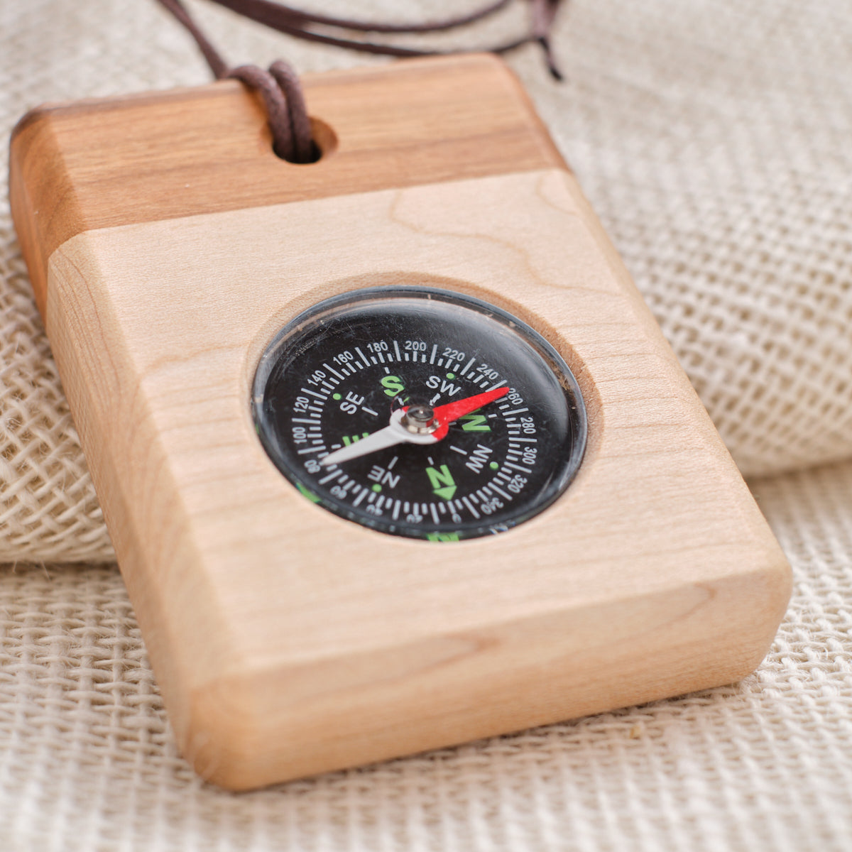 Directional Wood Pocket Fluid-Filled Compass or Necklace, Rectangle/Square, Multicolor, Maple Bottom