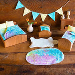 Make your dollhouse a sweet home with handmade furnishings for your dollhouse. All items are designed to coordinate with and fit our cherry dollhouse and furniture. The doll mattress' have a 100% cotton batting layer inside. Sewn to perfection! (Furniture not included.)