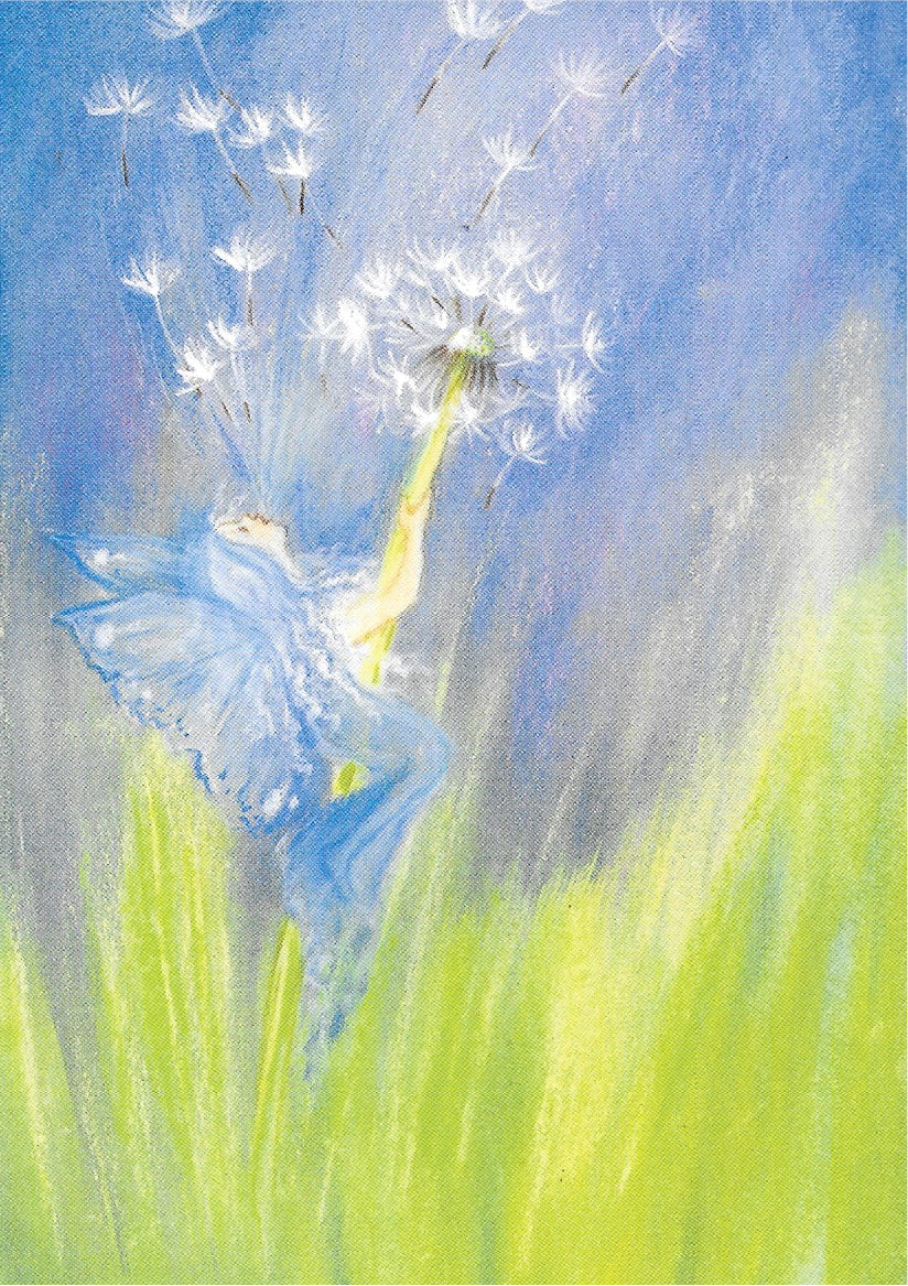 Elf Blowing Dandelion Fluff postcard to add to your collection of cards selected each month or week for your postcard holder.