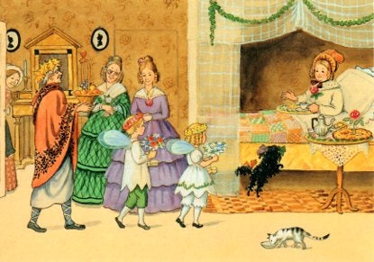 Elsa Beskow Postcard, Aunt Brown's Birthday - 4-1/8" x 5-13/16"