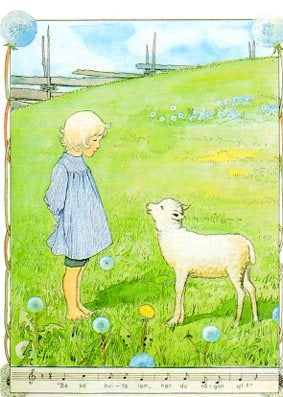 Elsa Beskow Postcard, Child and Lamb - 4-1/8" x 5-13/16" - Ba Ba
