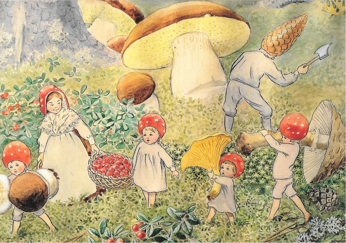 Elsa Beskow Postcard, Mushroom Harvesting - 4-1/8" x 5-13/16"