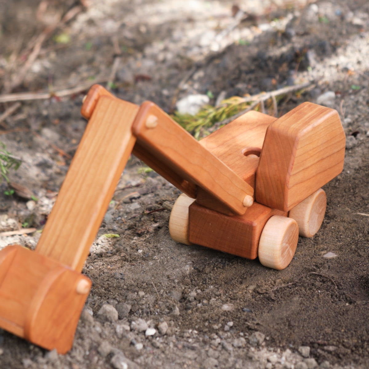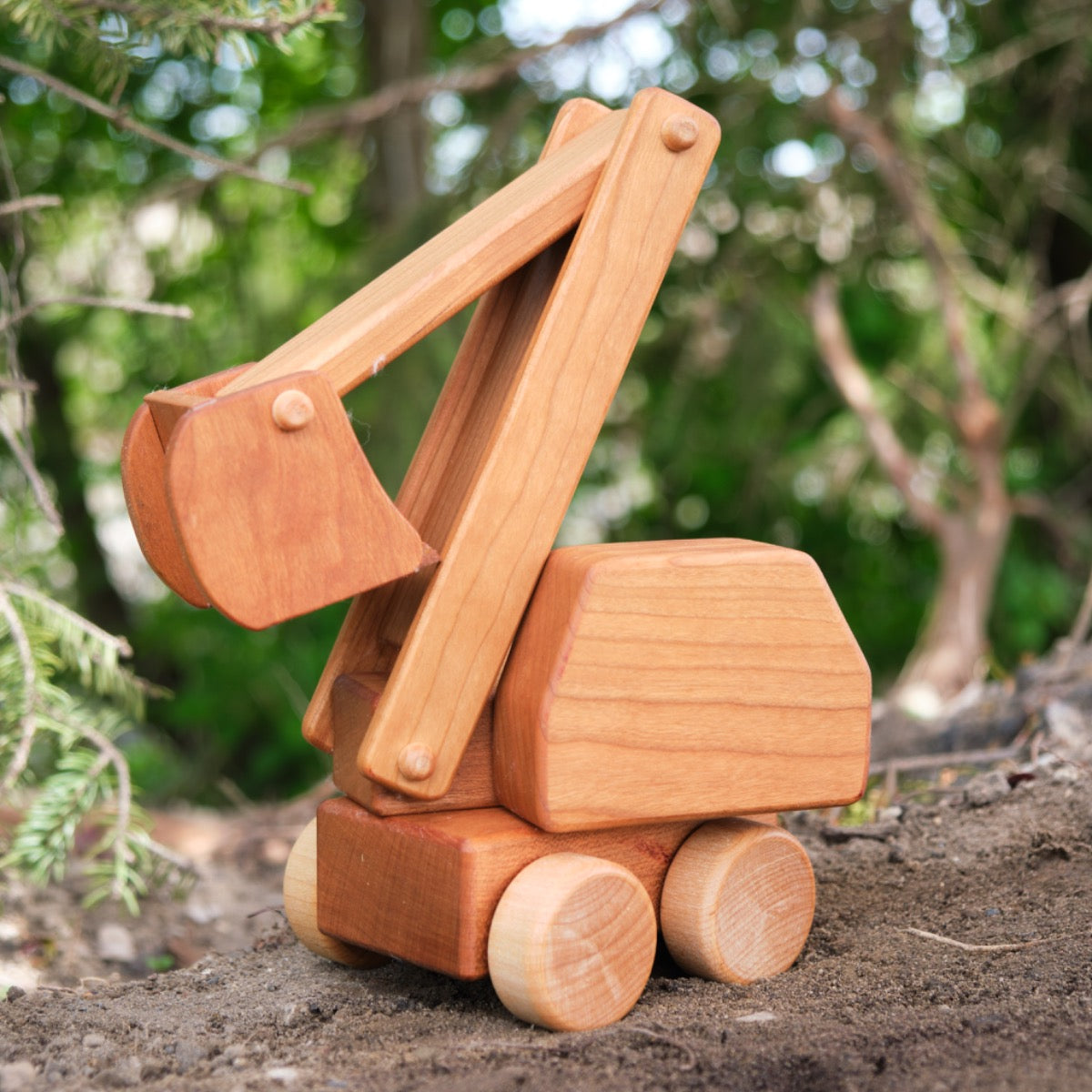 Excavators are a fun vehicle enjoyed by all ages--Our cherry wood Excavator Digger is built for endless play and adventure!