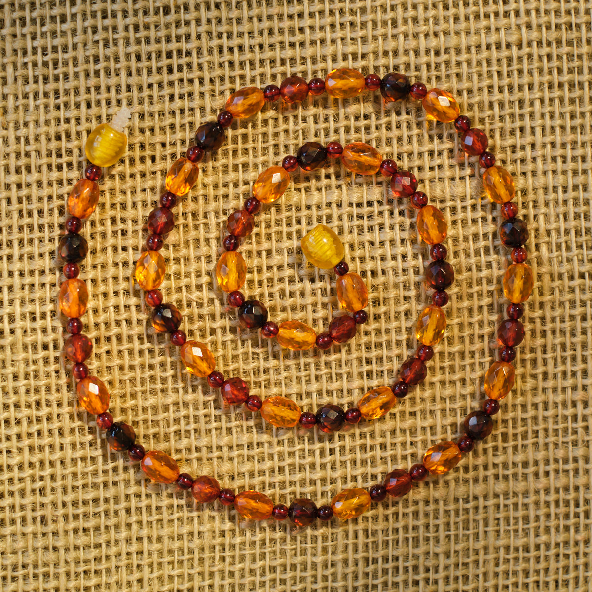 Exquisite Gem Cut Baltic Amber Necklace, 17-18" Long, Multi-color with Smooth Faceted Beads, Small Merlot Beads