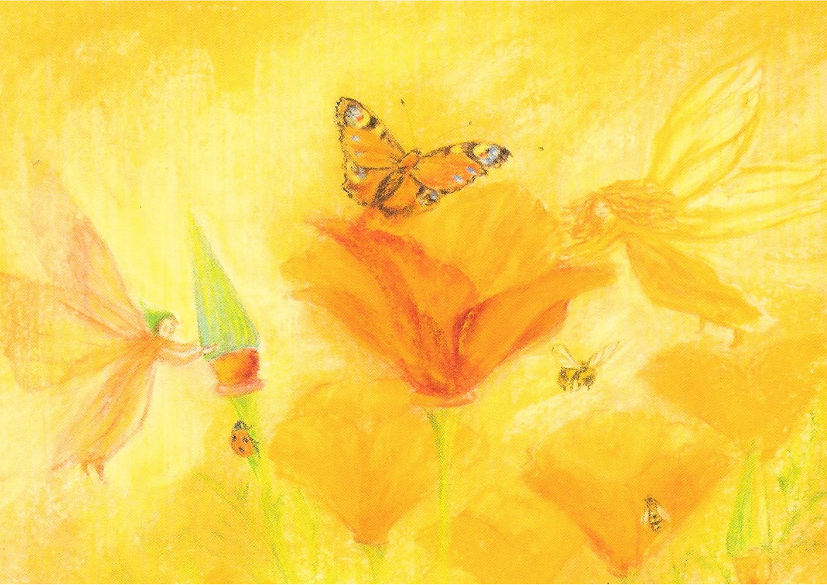 Fairies Helping The Flowers postcard to add to your collection of cards selected each month or week for your postcard holder.
